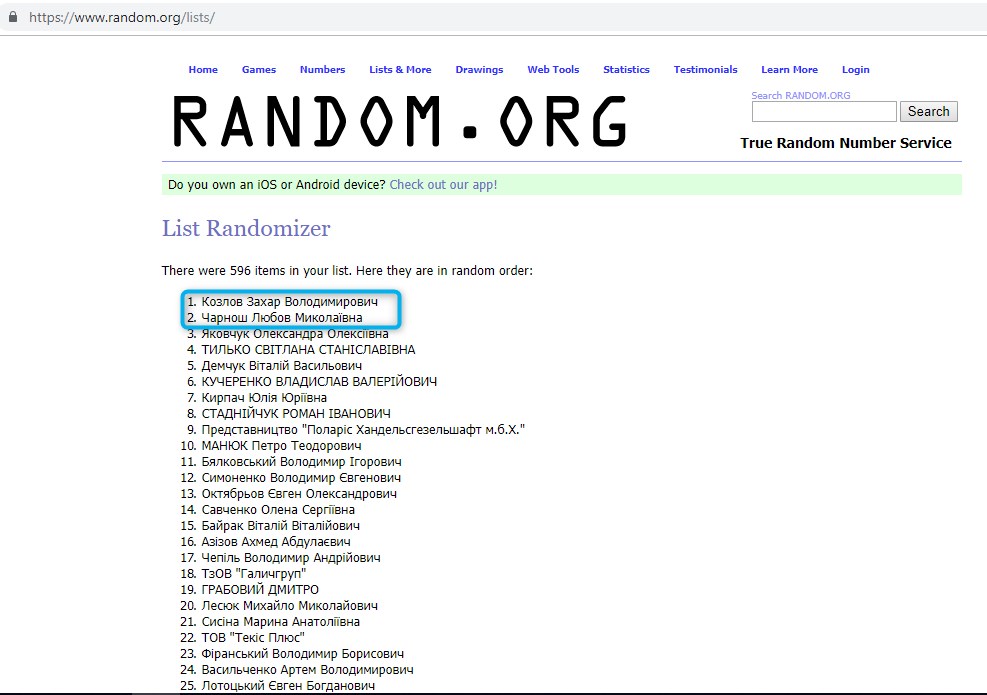 Якщо ви купували КАСКО та приймаєте участь у акції, шукайте своє ім’я на скріні з результатами.